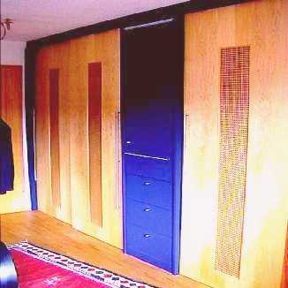 Schiebetüren in Ahorn mit Locatellifüllung ·Nextel-lackierung · Garderobenlift innen ·Schrank- stangen und Schubladen< zurück zu Referenzen >
