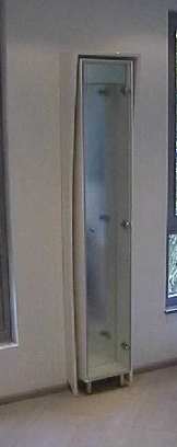 hochglanz lackiert · Türe in Master-Carre-Glas · Rückwand verspiegelt · innen Glasfächer