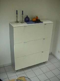 “Kommoden “ für CD, Spirituosen usw. · weiß lackiert · Schubladen voll ausziehbar · die Seiten sind silberfarbig lackiert · Griffe und Füße Aluminium
