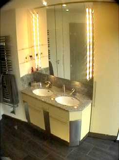 Nextel Lackierung · vor den HandtuchauszügenEdelstahltüren mit Quadratlochung zur Belüftung · 2 große Schmutzwäscheauszüge · Spiegelelementmit 3 Türen und Beleuchtung Steng Pipe < zurück weiter >