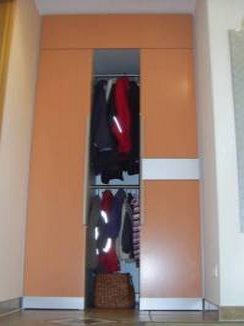 offener und geschlossener Bereich · Garderobenstange unten für die Kinder und oben für die Eltern · farbig seidenmatt lackiert