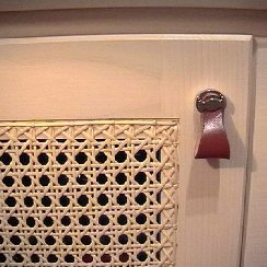 Garderobe mit massiven Rahmentüren und handeingezogenem Korbgeflecht