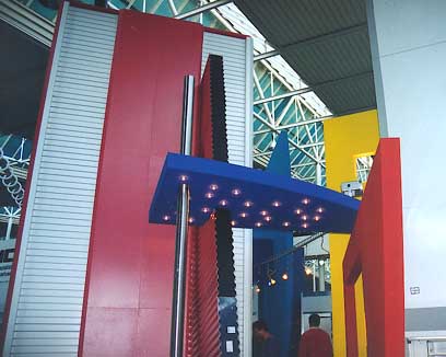Designelemente in Sperrholz farbig gestrichen