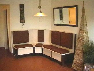 Nußbaum und weiß gebeizte Esche · Landhausstil · Sitzpolster ergonomisch geformt und mit Sisal bezogen · Polsterung durch Raumdecor Michael Schnell/Bietigheim-Bissingen
