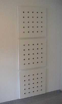SonstigesVerkleidung einer Kaminbelüftung · weiß hochglanz lackierte Platten mit runden Aluminium-einsätzen< zurück weiter >