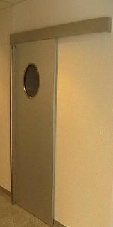 Bullauge in Edelstahl · Edelstahlgriff von FSB · Schiebetürbeschlag Perlan Fabrikat GEZE hinter einer Verblendung