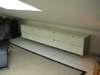 “Kommoden “ für CD, Spirituosen usw. · weiß lackiert · Schubladen voll ausziehbar · die Seiten sind silberfarbig lackiert · Griffe und Füße Aluminium